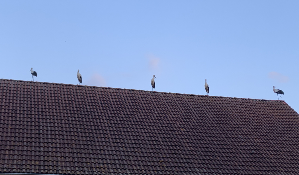 Die Störche machen sich auf den Weg Richtung Süden. Am 8. August sammelten sich, wie bereits die Tage zuvor, viele Störche in Otterwisch auf den Wiesen, Hausdächern und Strommasten um gemeinsam nach Afrika zu ziehen.